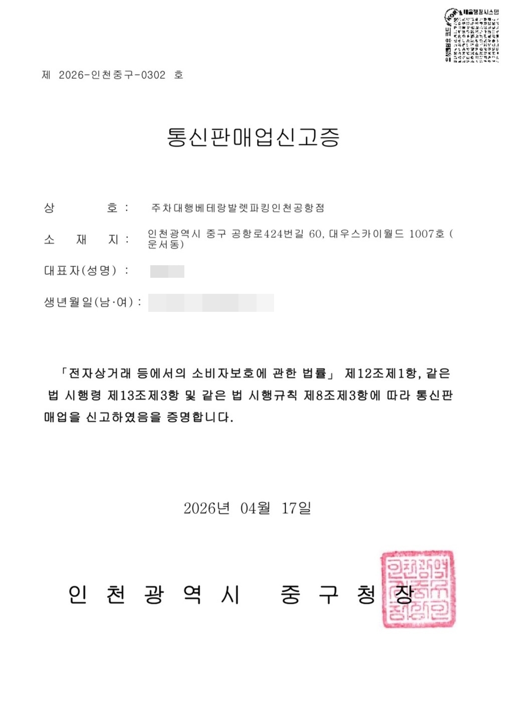 통신판매업신고증 페이지 정보 작성자 관리자 작성일 26-04-17 17:34 댓글 0건 조회 1회 본문 통신판매업신고증 목록 다음글사업자등록증 26.04.15 댓글목록 0 댓글목록 등록된 댓글이 없습니다.